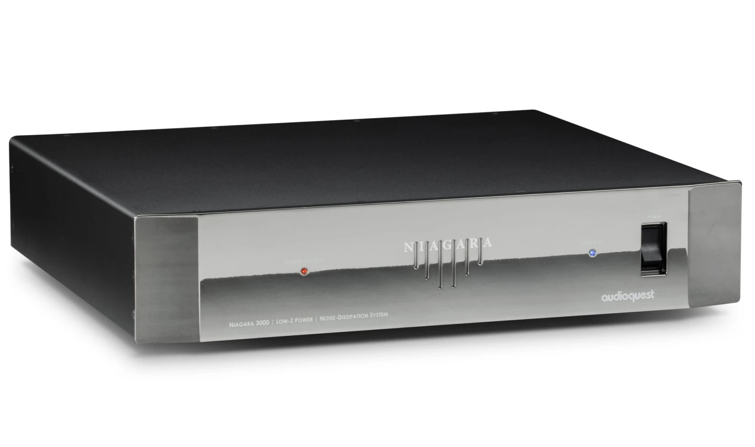 Optimized for remarkably effective dissipation of noise while boasting a 55A peak transient current reservoir to stop current compression, the AudioQuest Niagara 3000 Low-Z Power Noise-Dissipation System power conditioner brings flagship Niagara technology within reach to more users by way of its more accessible price. Insert Niagara 3000 into your audio chain and hear deep silences, dynamic freedom, outstanding ambient retrieval, and accurate delineation of instruments and musicians in space. The difference between what you experienced before and after Niagara 3000 might shock you. True to AudioQuest tradition, this baby comes loaded.
