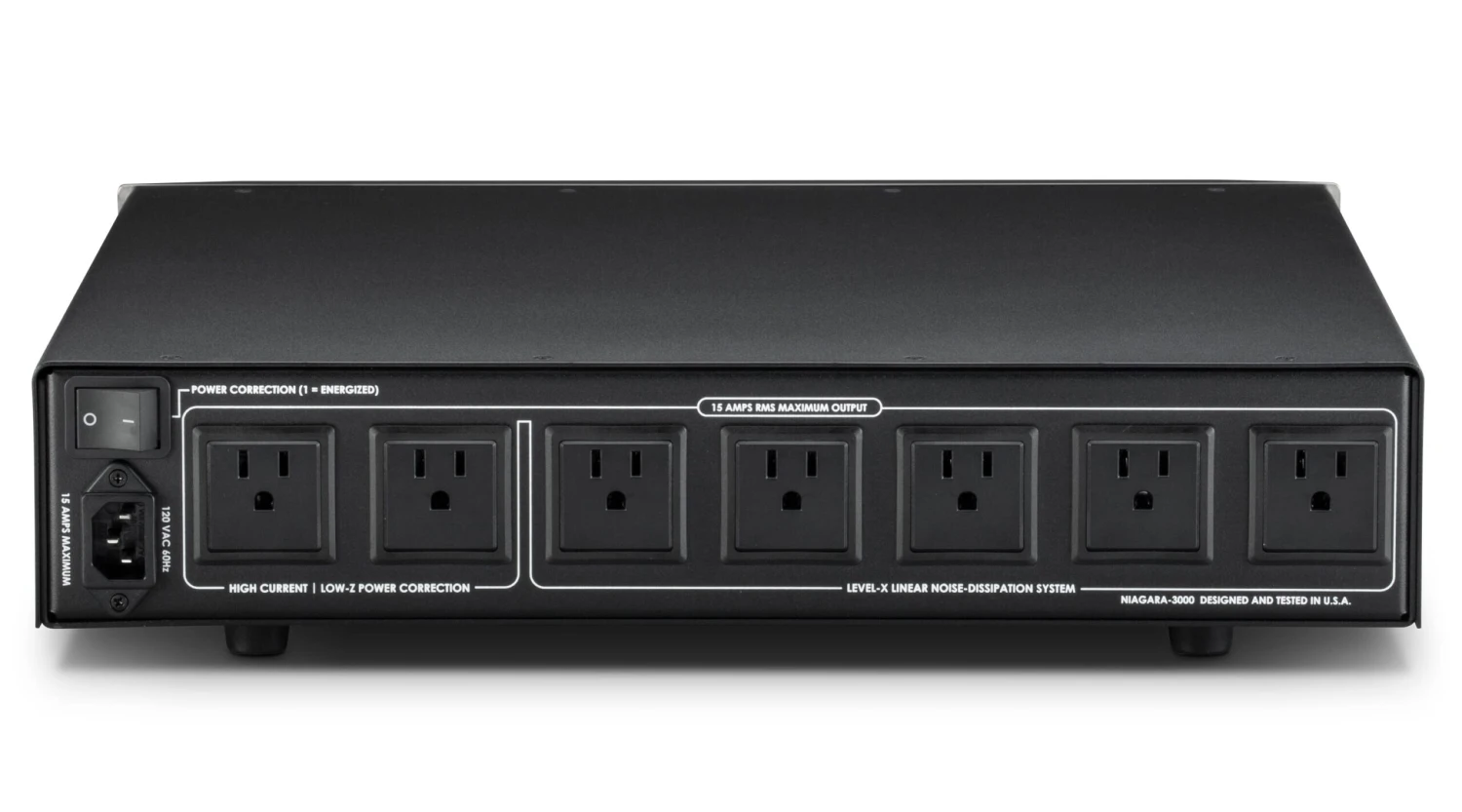 Niagara 3000 represents over 20 years of exhaustive research and proven AC power products designed for audiophiles, broadcast engineers, and professional-audio applications. Every conceivable detail has been addressed: In the Niagara 3000, you’ll find optimized radio-frequency lead directionality, capacitor run-in forming technologies developed by Jet Propulsion Laboratories and NASA, and AC inlet and outlet contacts with heavy silver plating over extreme-purity copper, assuring the tightest grip possible.