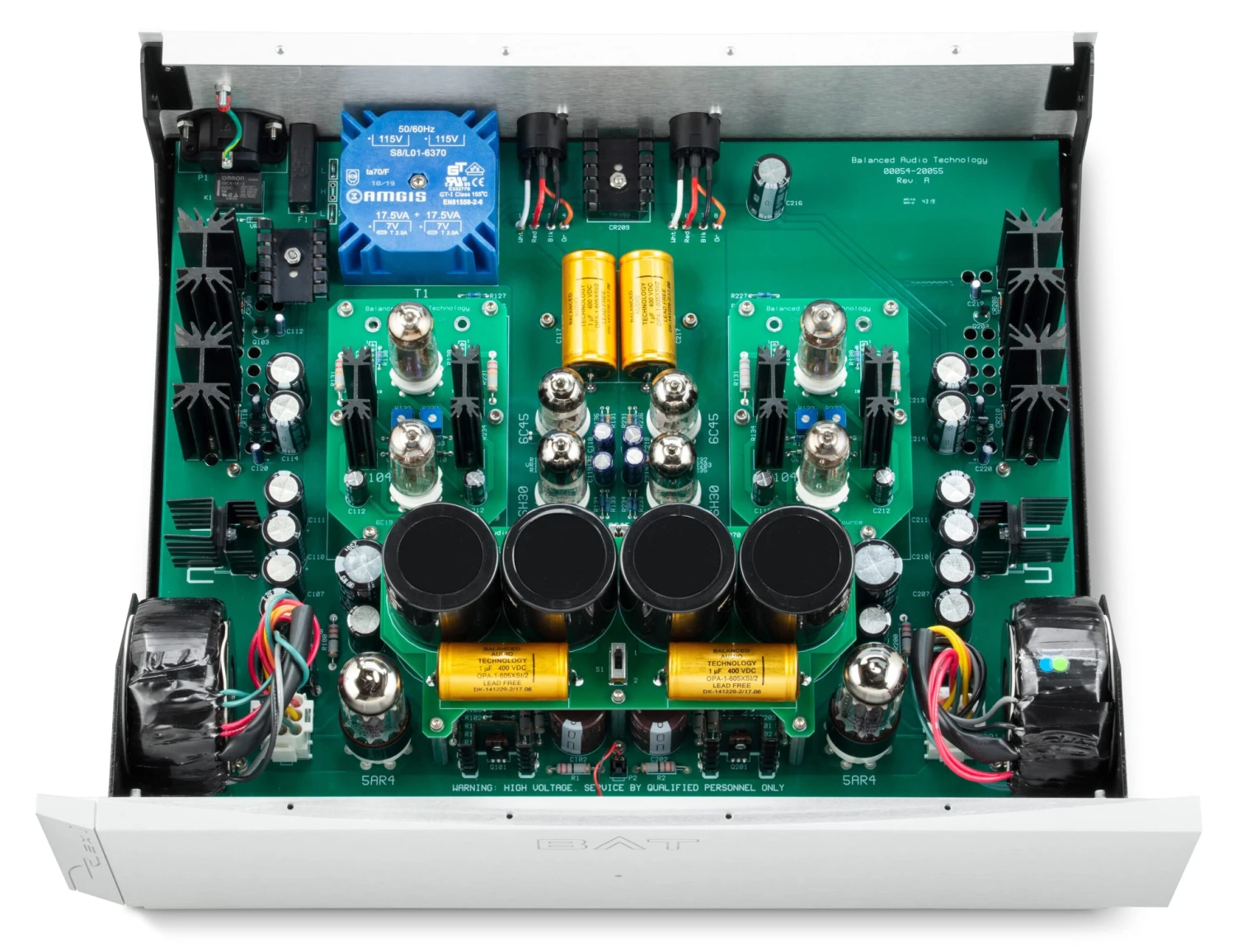 Balanced Audio Technology staked its reputation on this principal of circuit design from Day One. In BAT’s opinion, balanced topology provides a complete signal representation. Something magical happens when you free yourself from the limitations of the single-ended structure with its half-signal processing. In laymen terms, if a one-handed craftsman can be very good, imagine what he could do with two hands. It is fairly common to associate the advantages of balanced design with improved signal integrity when dealing with long interconnects, for example. However, the true benefits of a balanced approach to circuit design go far beyond signal transmission. They include such fundamental aspects of design as the interaction between the power supply and its associated gain stage. Consider: It has become common wisdom that the power supply should be considered a part of the signal path. However, whereas the sonic contribution of the power supply can be overwhelming in a single-ended design, it is much less of a concern in a balanced circuit. As the circuit becomes more symmetrical, the residual effect of the power supply becomes less intrusive. In effect, the demand on the power supply gets reduced, making it easier to design a balanced circuit that conforms more closely to the engineering ideal.