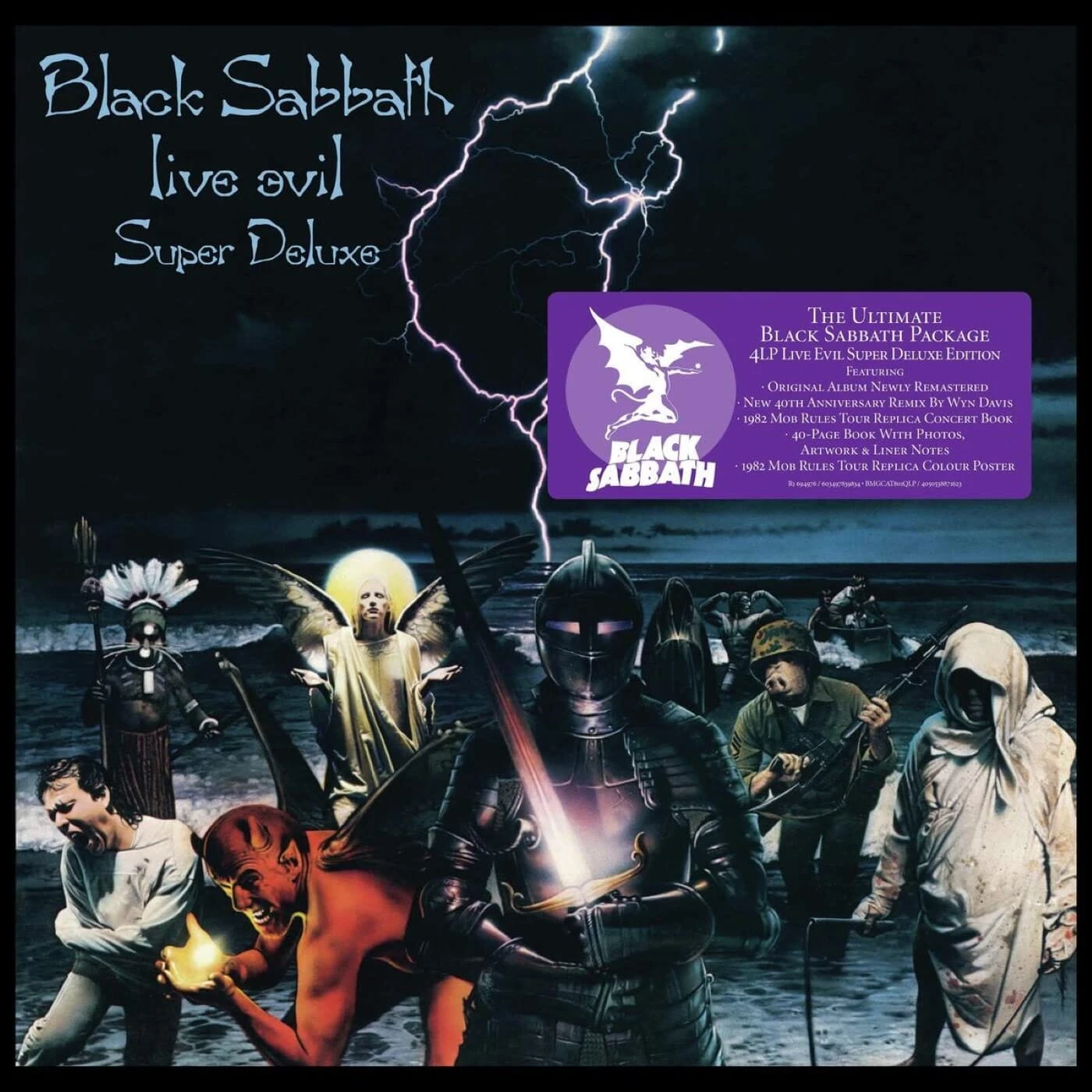 The Black Sabbath line-up of Ronnie James Dio (vocals), Tony Iommi (guitar), Geezer Butler (bass), and Vinny Appice (drums) created some perennially popular rock/metal music from 1980-2009, and performed many memorably exciting live shows, leaving fans with happy memories of a band that never delivered less than 100% on stage or on record. Live Evil is the embodiment of that legacy. This 40th Anniversary Super Deluxe Edition vinyl 4LP box set finds the original 1983 album newly remastered and newly remixed by Wyn Davis and joined by a 1982 Mob Rules tour replica concert book, 1982 Mob Rules tour replica poster, and 40-page book.