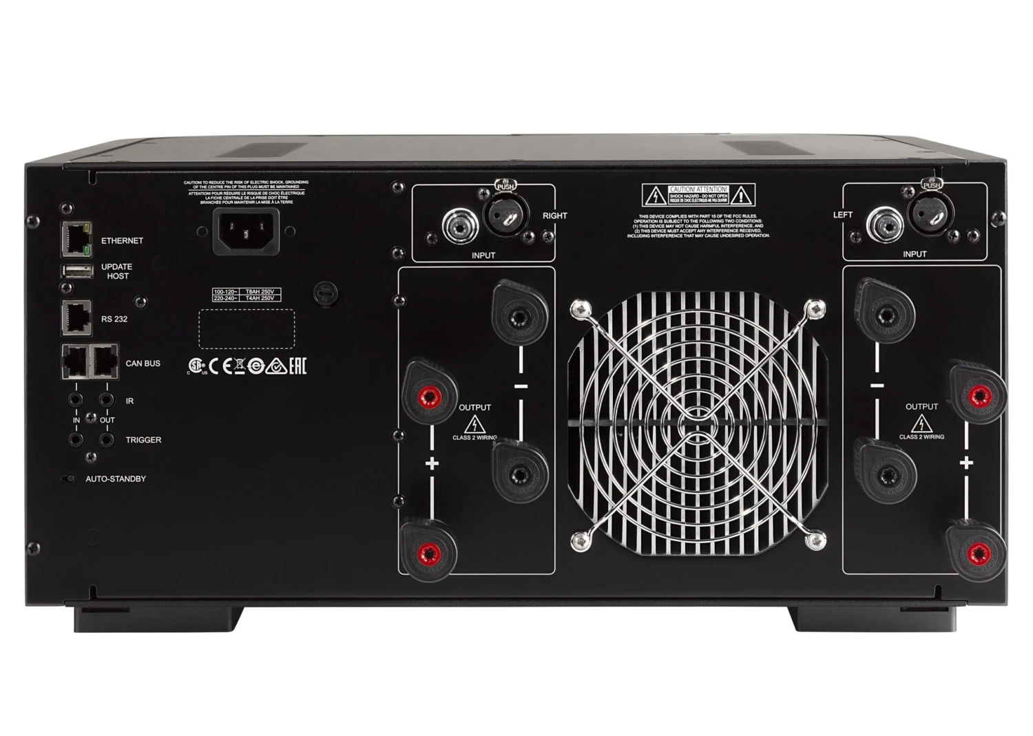 Classé’s innovative cooling system is far from the only cutting-edge aspect found inside (or outside) Delta Stereo. A massive toroidal transformer hand-wound with nearly a third of a mile of copper wire, complete with separate secondary windings for each channel, accompanies 22 four-pole Mundorf capacitors that supply tremendous energy storage. Hand-laid, six-layer circuit boards with identical signal paths for the left and right channels and a MOSFET output stage are also onboard. On the rear panel, four sets of some of the industry’s finest binding posts – Furutech-made, five-way, rhodium-plated connectors with torque guard protection – complement XLR and RCA inputs and expansive connectivity that accommodates IR remote, DC trigger, USB, Ethernet, RS-232, and Classé’s own CAN-Bus network. For iron-clad stability, Delta Stereo rests on Navcom footers specifically tuned to the weight of the amplifier. Classé even supplies a formidable, temperature-immune power cord tailor-made for Delta Stereo by DR Acoustics. Woot!