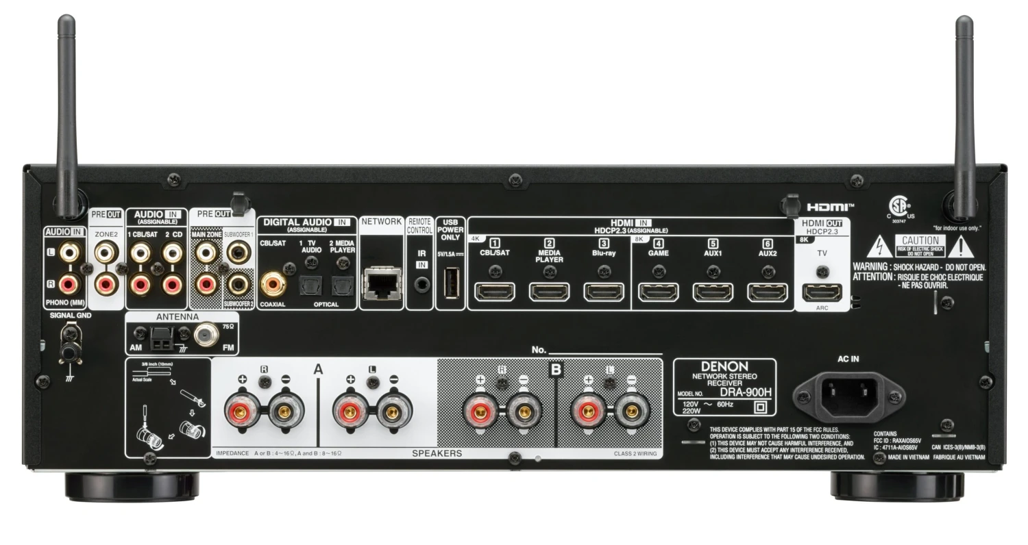 Enjoy your music and movie collections, including vinyl, CD, Hi-Res, Blu-ray, and even the latest 8K content, all from a two channel system. Plus, with HEOS® Built-in, you can wirelessly stream online music and share it with HEOS-enabled speakers in other rooms.