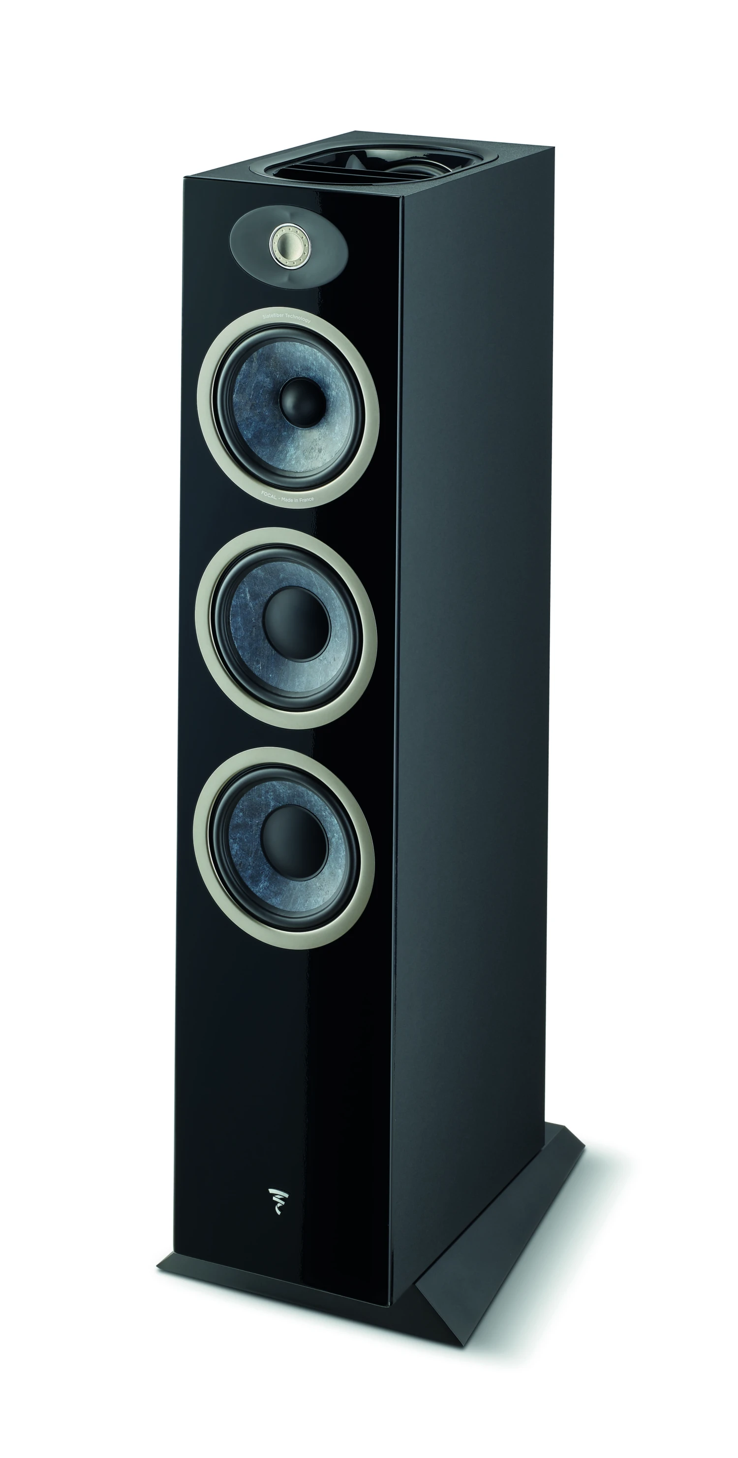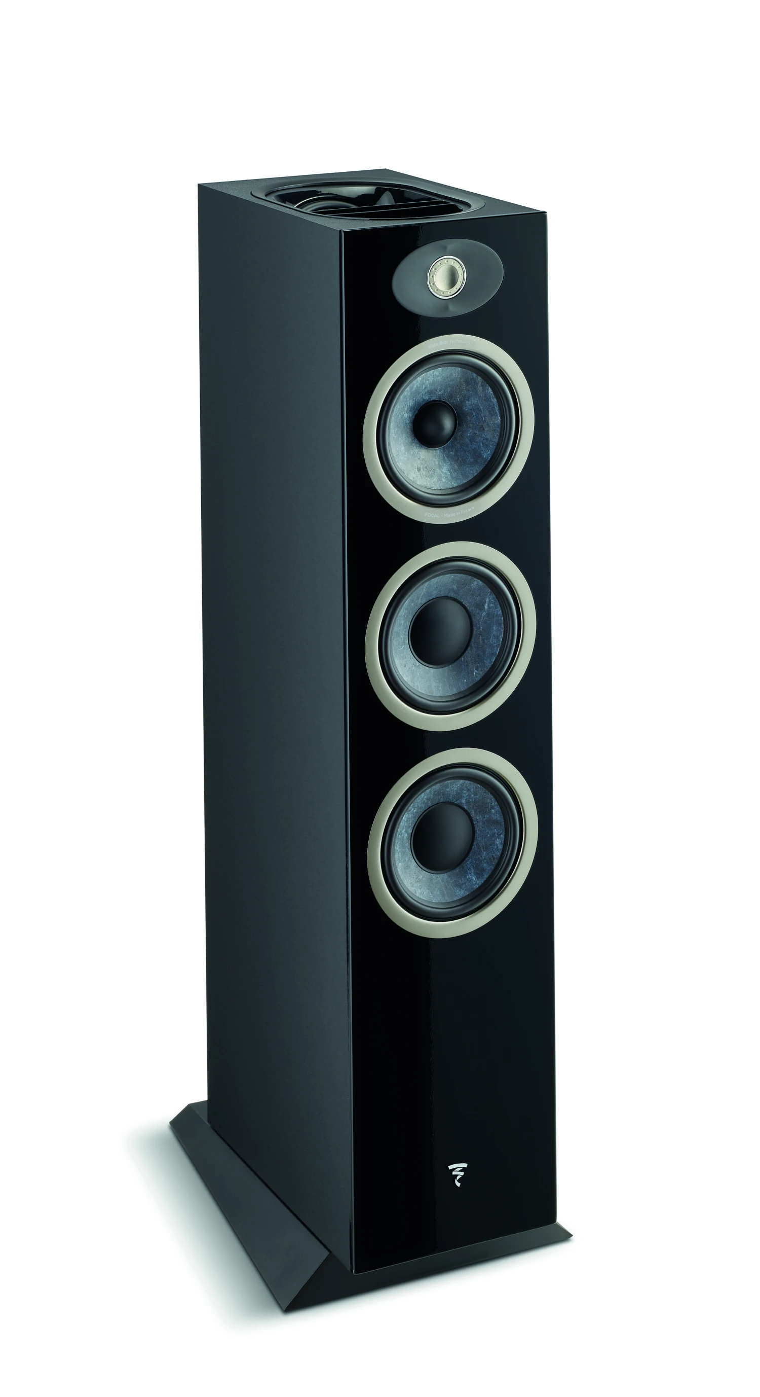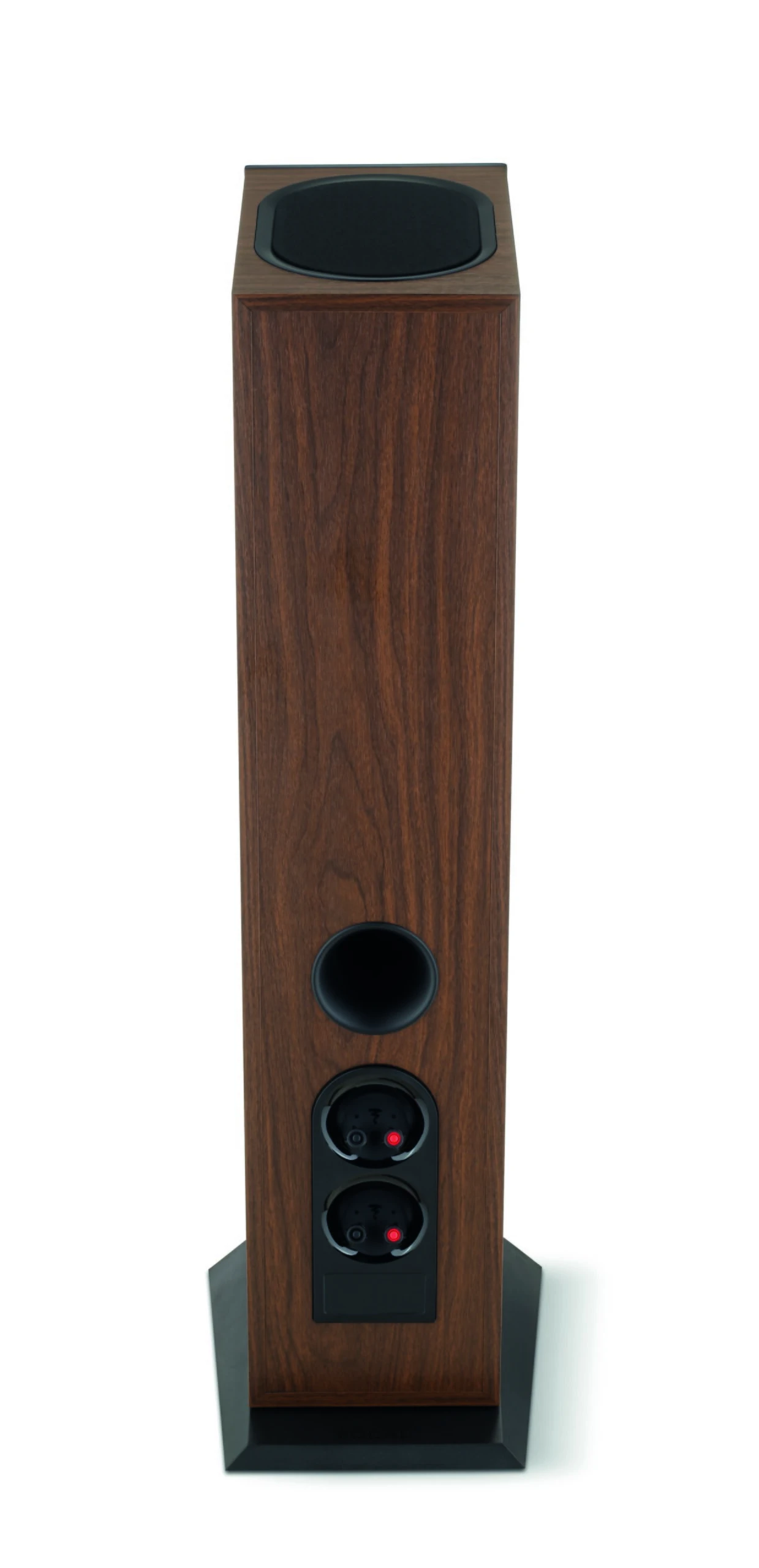 On the front, the three-way Theva No. 3-D features Focal’s signature aluminum-magnesium inverted-dome TNF tweeter, a 6.5-inch Slatefiber cone midrange, and a pair of 6.5-inch Slatefiber woofers. It plays with dynamic, balanced, and detailed sonics that will light up even large rooms. Its 91dB sensitivity means Theva No. 3-D is a cinch to drive; its titled stand optimizes the speaker’s positioning, ensures proper time alignment, and focuses the sound directly toward your location. Its savvy handling of crucial aspects such as imaging, control, dynamics, and tonal balance will become obvious soon after you unbox it and hook it up to an amplification source.