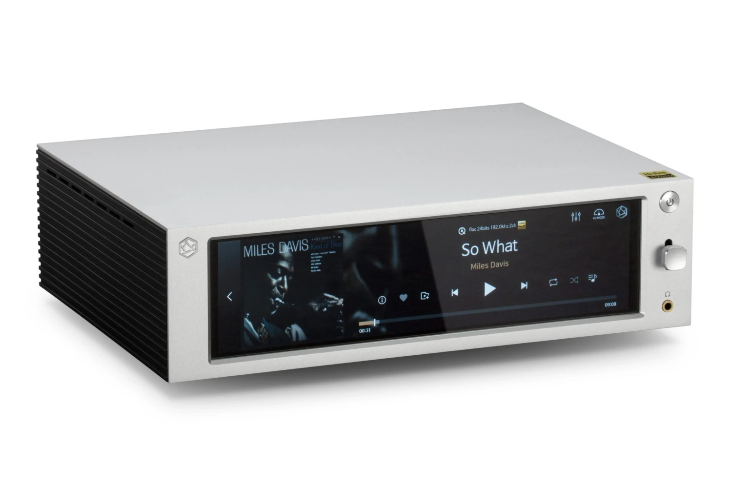 Ditto 4K video decoding via an HDMI 2.0 output and big-screen connectivity through an HDMI eARC input. You can even watch what youโre viewing on the unitโs 8.8-inch-wide, hi-def LCD display โ which also invites you to customizeย its appearance. While youโre at it, take advantage of RS201Eโs built-in storage that accommodates microSD cards, SSD drives, and USB sticks. Need a Roon endpoint? The Roon-ready RS201E does that, too.