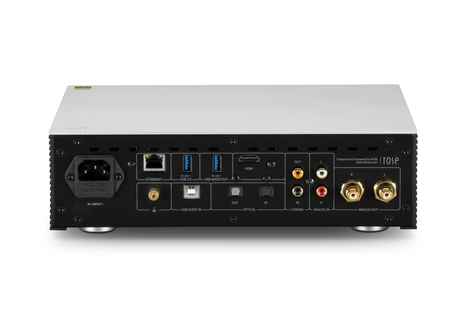Able to play high-resolution music up to 32-bit/768kHz and DSD512, the Room-ready RS250A fully decodes MQA files and plays video files via its HDMI connection in Ultra HD 4K quality. Its audiophile-grade sections and parts โ a shielded linear power supply, discrete OP amp, Femto oscillator, and hex-core CPU included โ parallel the quality of its construction, which extends to a robust aluminum casing and 8.8-inch color touchscreen. RSA250A is simple and fun to operate. Bluetooth remote functionality, a setup wizard, and the Rose app give you complete control. As does support for optional CD playing/ripping, OTA software updates, hard-disc and HDD storage, Apple AirPlay, DLNA, and more.