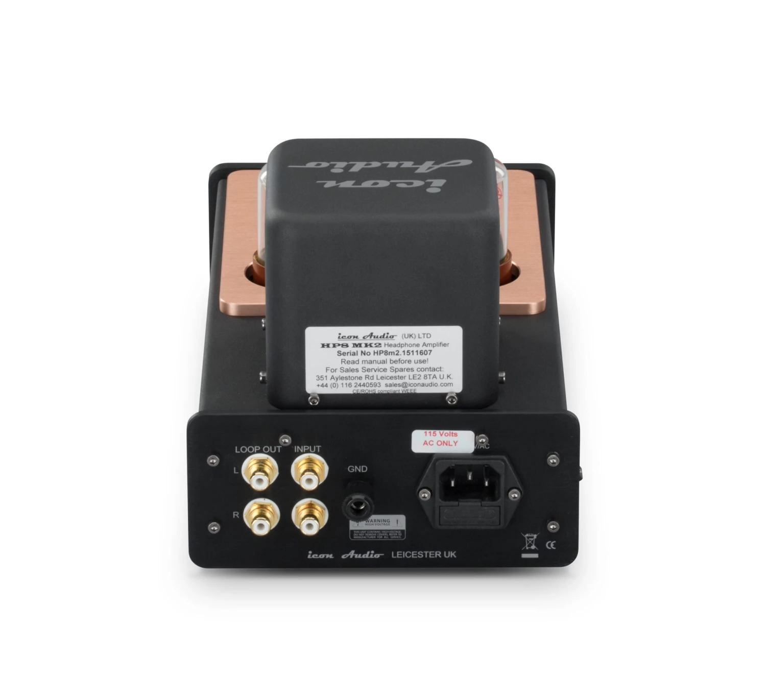Built just like Icon Audio’s magnificent tube amps, yet designed for the specific demands of ‘cans, the HP8 MkII tube headphone amplifier is a love letter to headphone listeners. Flexible, powerful and rich sounding, the HP8 MkII delivers the sonic goods and is built to last. Created by an audiophile for audiophiles, the HP8 MkII is chock full of sought after “sound goodies” from PTFE coated Silver internal wiring and an ALPS Blue volume pot to the heavy steel chassis and gold-plated RCA jacks. The circuit is simple; all point-to-point wiring, no circuit boards in the signal path, all tubes, all triode and as sonically pure as Icon could make it. The execution is fabulous with large Japanese made EI core transformers, metal-film and wire-wound resistors, polypropylene capacitors. HP8 MkII truly stands in a class all by itself. Even the gorgeous copper plate over the top is as functional as it is aesthetically pleasing. Listen to your ‘phones as they were intended to be heard, with tubes. HP8 MkII makes it easy no matter what headphones you own. Or will own.
