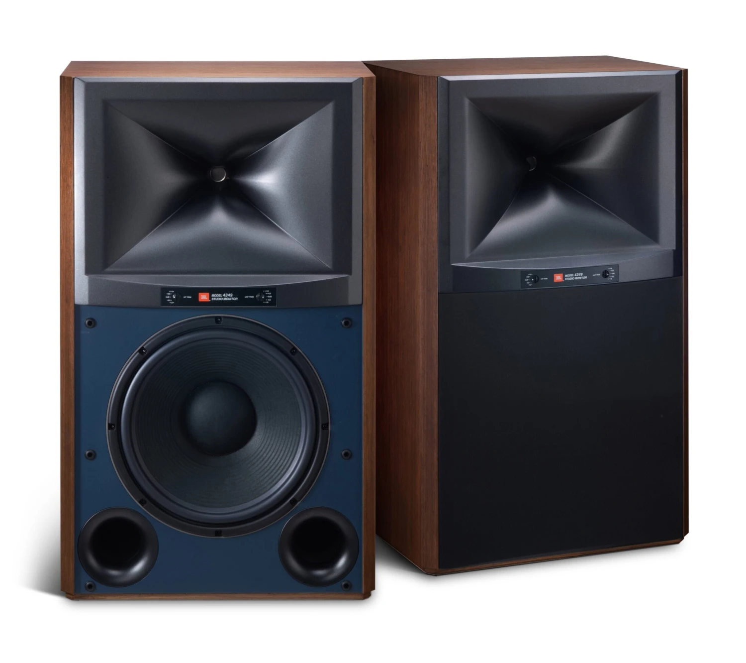 Designed and engineered in JBL’s world-famous acoustic engineering facility in Northridge, California, the 83-pound 4349 features a patented High-Definition Imaging (HDI) horn molded in Sonoglass, a patented D2415K dual 1.5-inch compression driver, and a massive 12-inch, cast-frame, pure-pulp cone woofer for powerful dynamics and incredible precision. High-frequency and ultra-high-frequency tonal adjusters are located on the front panel below the horn and allow you to tailor the sound to your specific environment and preference. They work in conjunction with an advanced crossover network design that boasts air-core inductors, cast wire-wound resistors, and low-ESR metallized film capacitors in a multi-cap configuration. The latter technique improves series capacitance by averaging their values while lowering ESR and distortion.