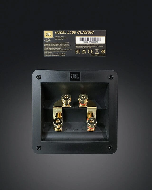 We highly encourage an in-home audition. But if you take us up on it, do yourself a favor and hold on to your drink. (We are not responsible for anything that gets blown away!) All you need to do is connect your system to the pair of gold-plated binding post terminals on the L100BG Classics’ rear panel. They round out an ear-opening instrument that measures 25 inches tall x 15 1/3 inches wide x 14 2/3 inches deep and weighs 58.5 pounds apiece. (Optional black metal floor stands with adjustable carpet spikes are available.) Behold, an instant classic is at hand.