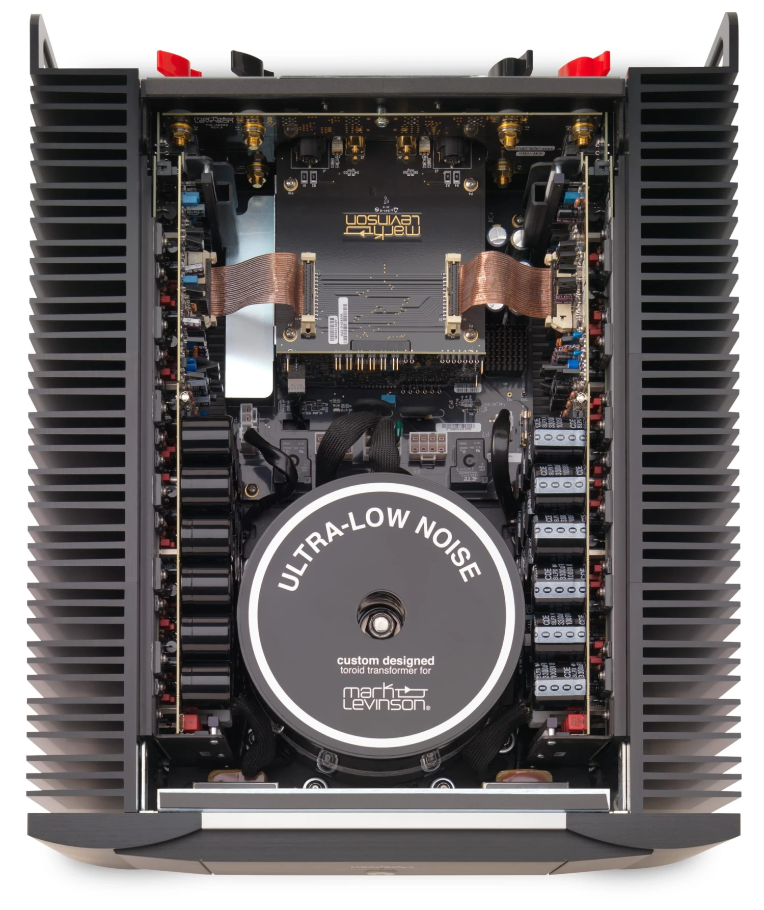 All Mark Levinson equipment employs electronic components carefully chosen for their specific task. Gain-stage JFET pairs have high gain, low noise, and low distortion. And since they are encapsulated in the same package, the two devices operate under nearly identical conditions. Capacitors used in critical filtering locations are film types, noted for their consistent performance regardless of temperature and frequency. Finally, resistors in critical gain-setting and feedback locations use tantalum nitride thin-film elements. Tantalum nitride typically finds use in sensitive military equipment because it is unusually stable with respect to temperature, exhibits very low noise, and is unaffected by magnetic fields. In fine audio equipment, those characteristics make the sound more revealing and effortless, free of the low-level nonlinearities caused by lesser resistive materials as they heat and cool under dynamic conditions.