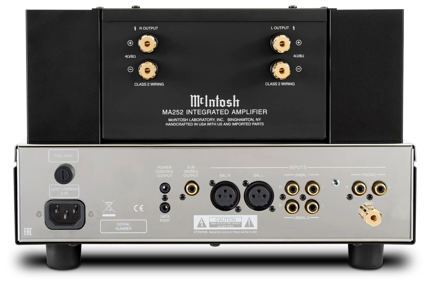 The 28-pound MA252 also arrives prepared to match with a variety of configurations. One pair of balanced inputs, two pairs of unbalanced inputs, and a built-in MM phonostage complement a subwoofer output, power control output, data port, and gold-plated binding posts. You can adjust Input selection, bass, treble, tone bypass, balance, and input offset levels via the front-panel knobs or supplied remote control. A three-year manufacturer warranty and the knowledge that McIntosh has been among the leading audio brands for more than seven decades provide more assurance that MA252 is nothing but quality.
