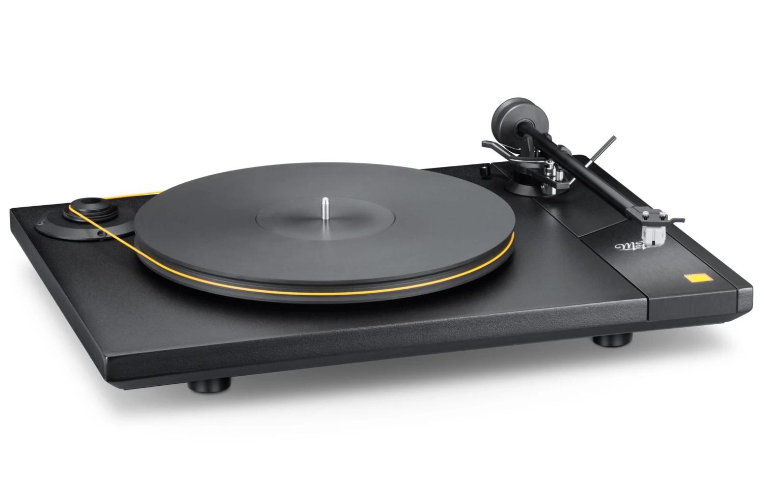 Similarly, and acting in concert with cutting-edge dampening matter, the Delrin pulley – which comes with positions for 33 1/3 and 45RPM speeds – keeps motor vibrations away from the platter and stylus. Speaking of the motor: StudioDeck Foundation’s 300RPM isolated AC synchronous type delivers excellent speed stability for stellar pitch accuracy and rhythmic drive.