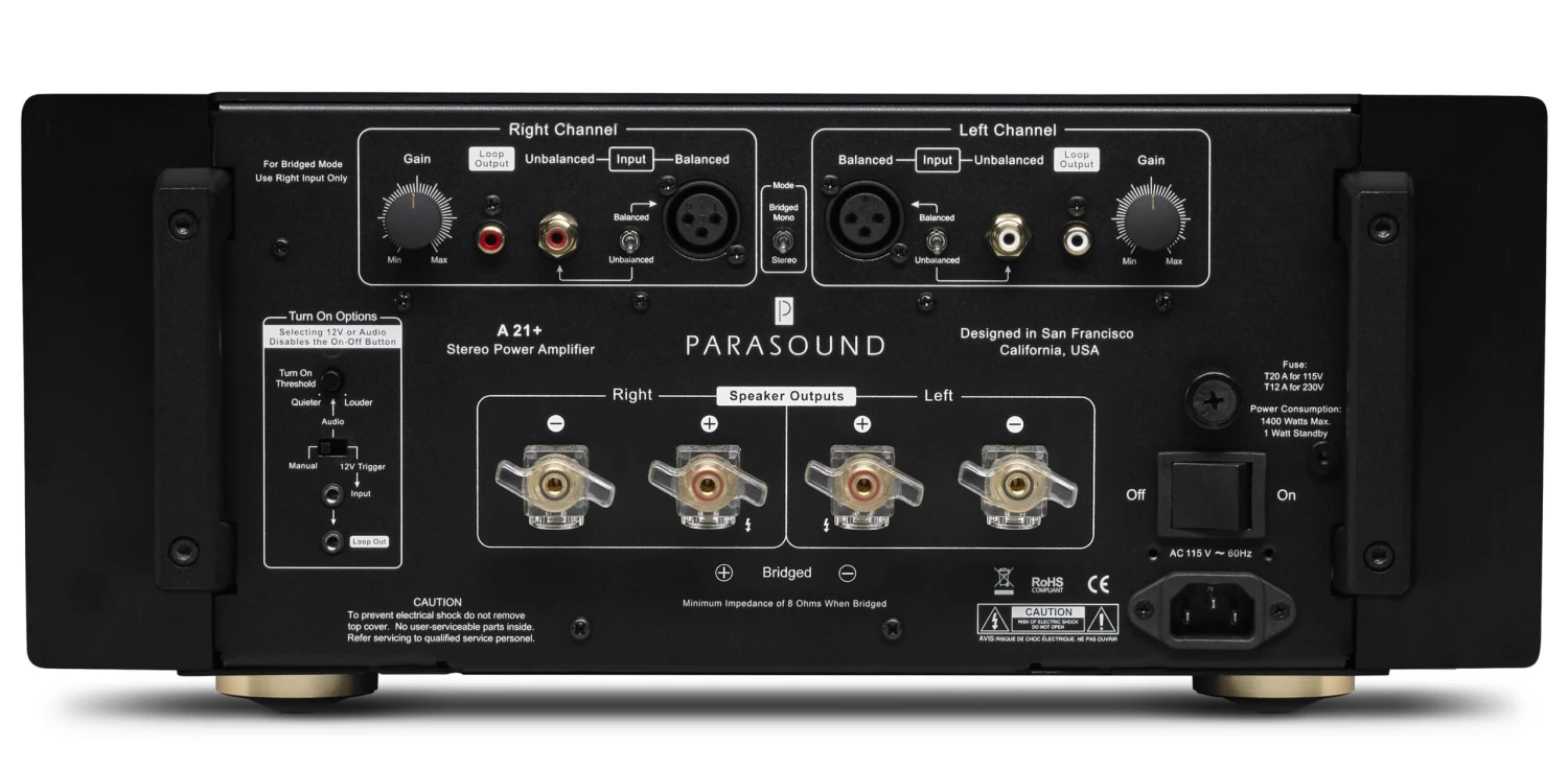 “The Parasound A 21+ is remarkably powerful, transparent and quiet. As such, it imposes no constraints on one’s desire to listen through it to the recorded performance or to experience the size, weight, and dynamics of the original event.”