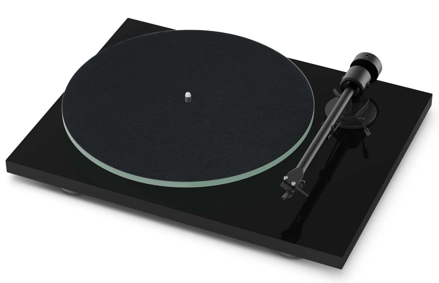 Underneath T1’s high-gloss finish, you’ll find a CNC-machined plinth that involves no plastic parts. It arrives carefully constructed to eliminate gaps and hollow spaces that cause lesser turntables to vibrate and rob music of clarity and focus. A heavy blasted-glass platter further reduces resonances common to cheaper plastic or lightweight steel designs. Utilizing a newly developed sub-platter and bearing assembly found in Pro-Ject’s highly praised Essential III Series, T1 renders black backgrounds and provides propulsive pacing that will keep you reaching for record after record.