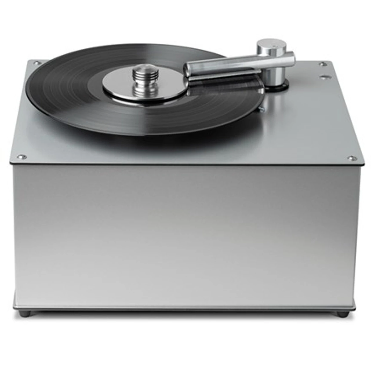 The ultra-potent VC-S2 ALU requires a maximum of just two complete rotations to completely clean and dry an LP; often, it performs the job with just one rotation. Such efficiency is matched by a speed that turns records within two seconds per rotation – a rate three times quicker than most machines – and results in cleaner, entirely dry LPs free of residual humidity. And while VC-S2 ALU automatically exhausts the cleaning liquid from your records, an innovative aluminum clamp protects every LP’s record label by sealing it off and preventing it from being touched by cleaning fluid.