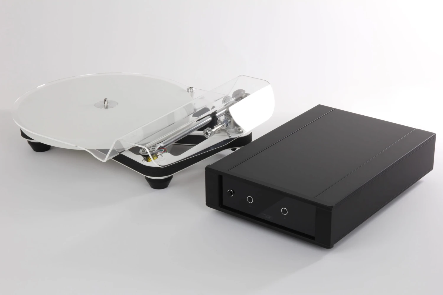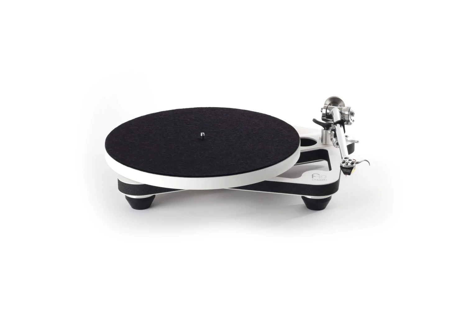 Planar 10 uses a new low-mass central bearing assembly. A single-piece, machined aluminum subplatter and hardened tool steel spindle run inside a custom brass housing designed with improved mechanical integrity. The complete assembly is mounted within the chassis to eradicate unwanted potential energy being transferred or stored in the plinth. In addition, Planar 10 uses a custom ceramic, flywheel-effect platter produced from ceramic oxide powder that is compressed, fired, and diamond-cut to ensure utmost accuracy and flatness across the surface. The latest platter also features modified construction with improved coupling to the sub platter.