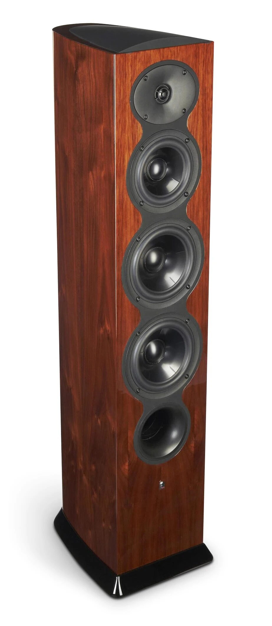 F206 comes housed in enclosures that are similar to Revel’s flagship Ultima2 Series. These fully curved enclosures are inherently stiffer than conventional box shapes and are formed with contiguous wood layers that prevent splitting. They feature strategically oriented bracing that eliminates the possibility of enclosure-induced coloration. The beautiful, modern enclosures are finished in high-gloss piano black, high-gloss piano white, or genuine American walnut in a process (developed and overseen by Italian luxury cabinet makers) that exceeds automotive finish quality.
