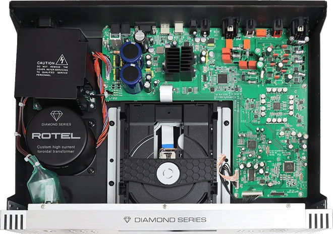 The tray-loading CD player benefits from Rotel’s decades of expertise in engineering and manufacturing award-winning disc spinners. The design includes a spring-floating CD mechanism with damping materials to reduce mechanical noise and vibrations during playback. Precision motor controls and an optical laser pickup allow this fantastic player to extract subtle nuances and intricate sonic details present on the recording.