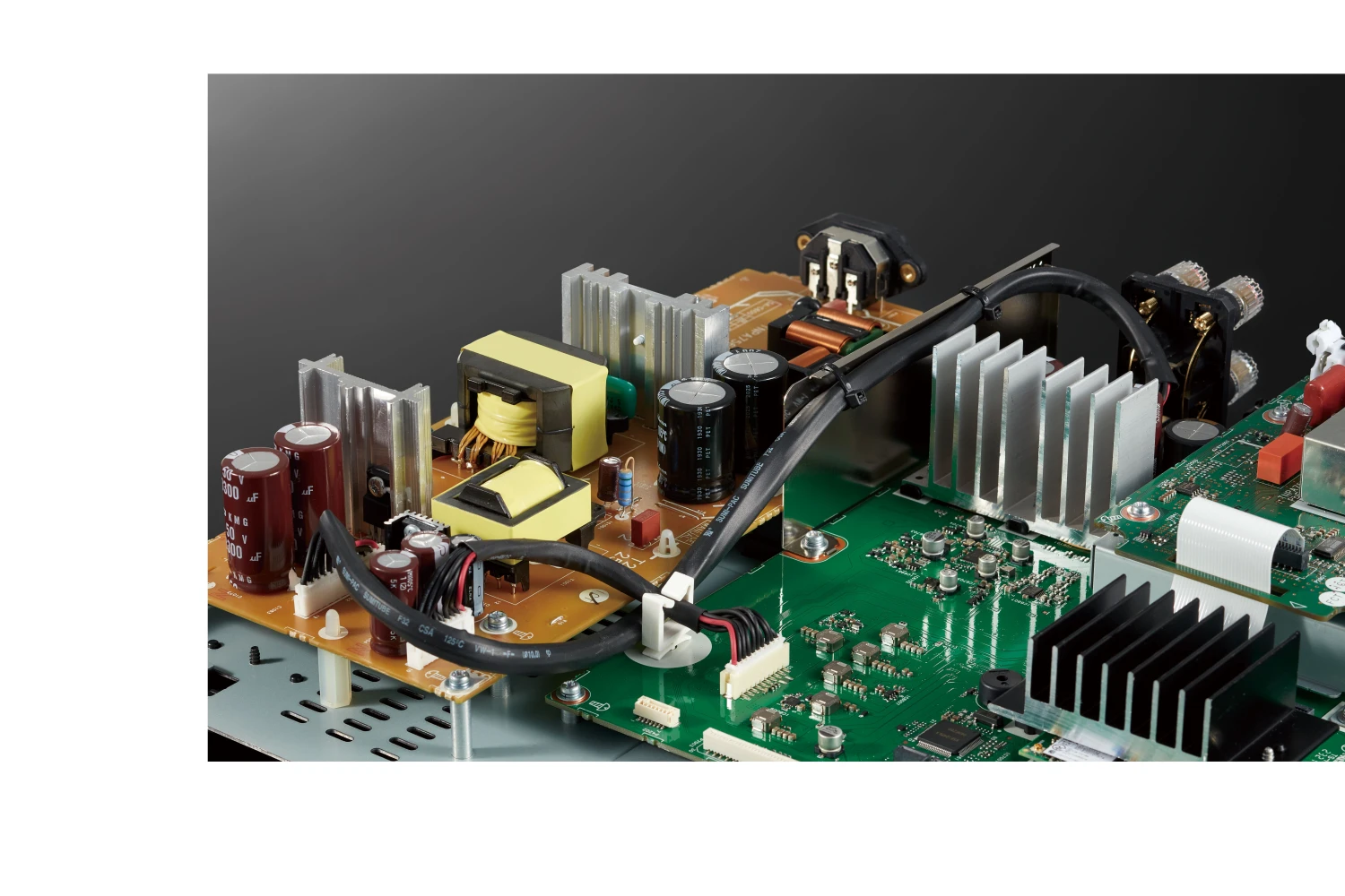 The design of the power supply is extremely critical in audio systems containing CD players, amplifiers, digital circuits and other such components. To eliminate any adverse effects on the amplifier, the SA-C600 is equipped with a dedicated power supply for the amplifier circuits that is independent from all other circuits, supplying power to the two independent transformers. The wiring connections between the two dedicated transformers and the amplifier circuits are also optimized for noise reduction.
