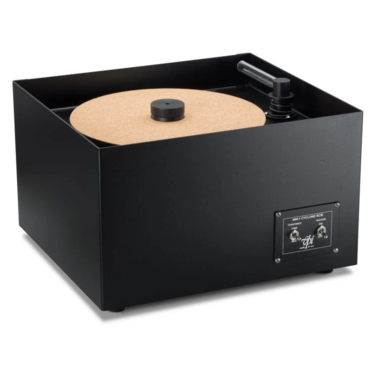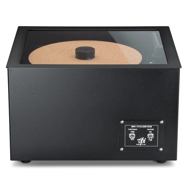 Blow away all the unwanted dirt and harmful debris on your vinyl LPs with the VPI MW-1 Cyclone record-cleaning machine. Designed by Matthew Weisfeld, son of VPI co-owner Harry Weisfeld, MW-1 Cyclone is surrounded by a beautiful aluminum housing, rotates for scrubbing and vacuums in both directions (a first!), and removes more debris from LP surfaces. A brick-strong support-platter assembly, significantly quieter operation than the VPI HW-16.5, indestructible build quality, and the ability to press as hard as you want while scrubbing without breaking the motor are even more reasons to do the Twist(er). Backed by our 100% Satisfaction Guarantee!