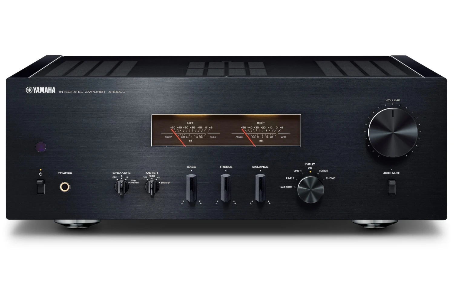 While the retro VU meters and under-the-hood architecture draw your eyes, the illustrious transparency and wide-ranging openness of the Yamaha A-S1200 integrated amplifier lures your ears. Equipped with a single-ended circuit in the preamplifier stage, and structured around Yamaha’s low-impedance concept to minimize energy loss and increase accuracy, the 90Wpc A-S1200 is all about emotional involvement and pure, meticulously defined sound. A floating and balanced power amp with MOSFET power transistors, a reference-grade volume control, and massive toroidal transformer further ensure edge-of-your-seat dynamics while a discrete MM/MC phono preamplifier invites you to enjoy analog warmth well into the early-morning hours.